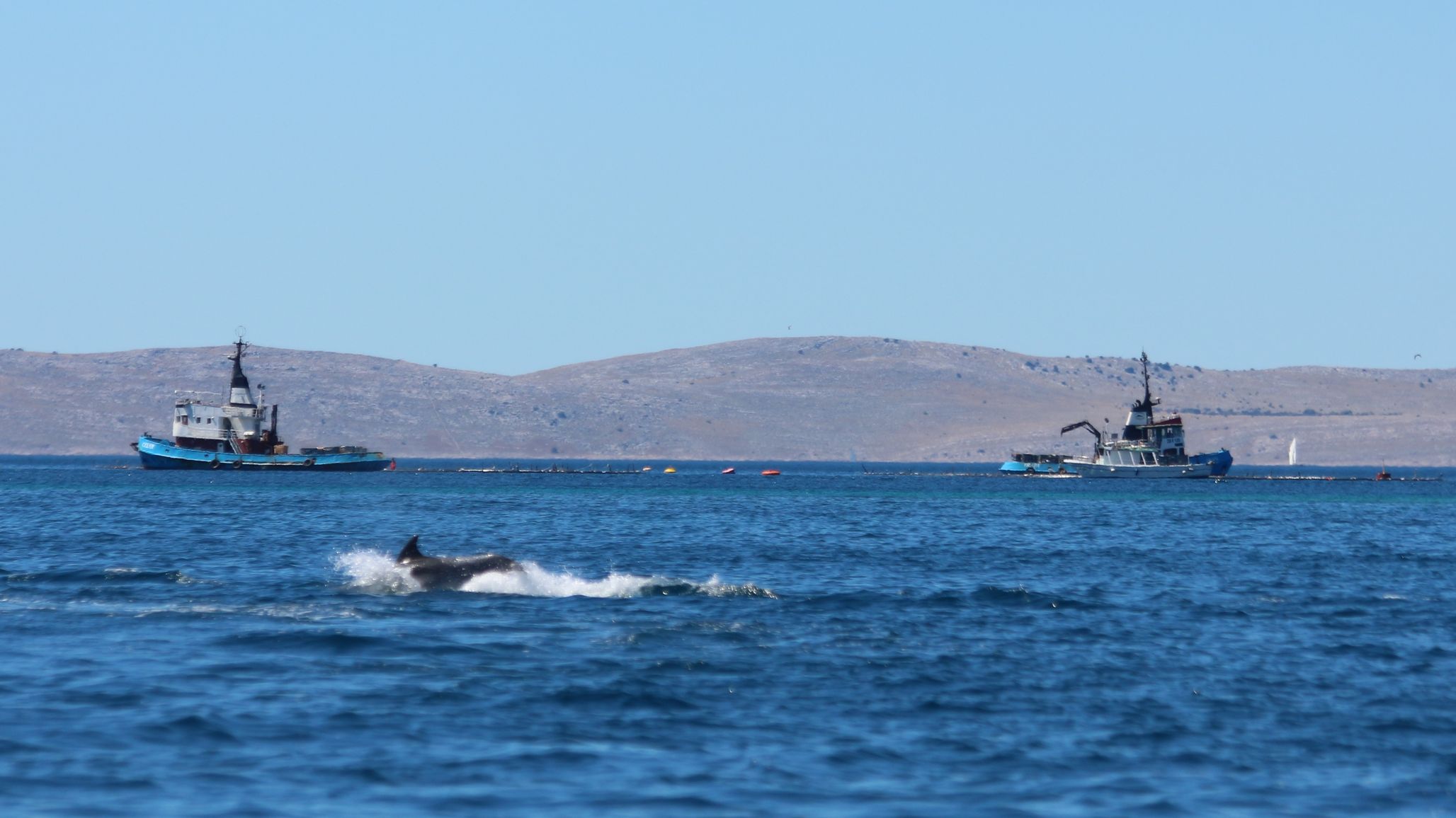 Die originale Fahrpersenning (LKW Plane - grau) hat bis zuletzt gehalten, war aber sehr schwer und auf der Fahrt nicht gut zu verstauen. Daher wurde 2015 in Kroatien eine Fahrpersenning aus atmungsaktiven Material gefertig, welche auch bei stehendem Bimini montiert werden konnte (blau auf den Bildern)