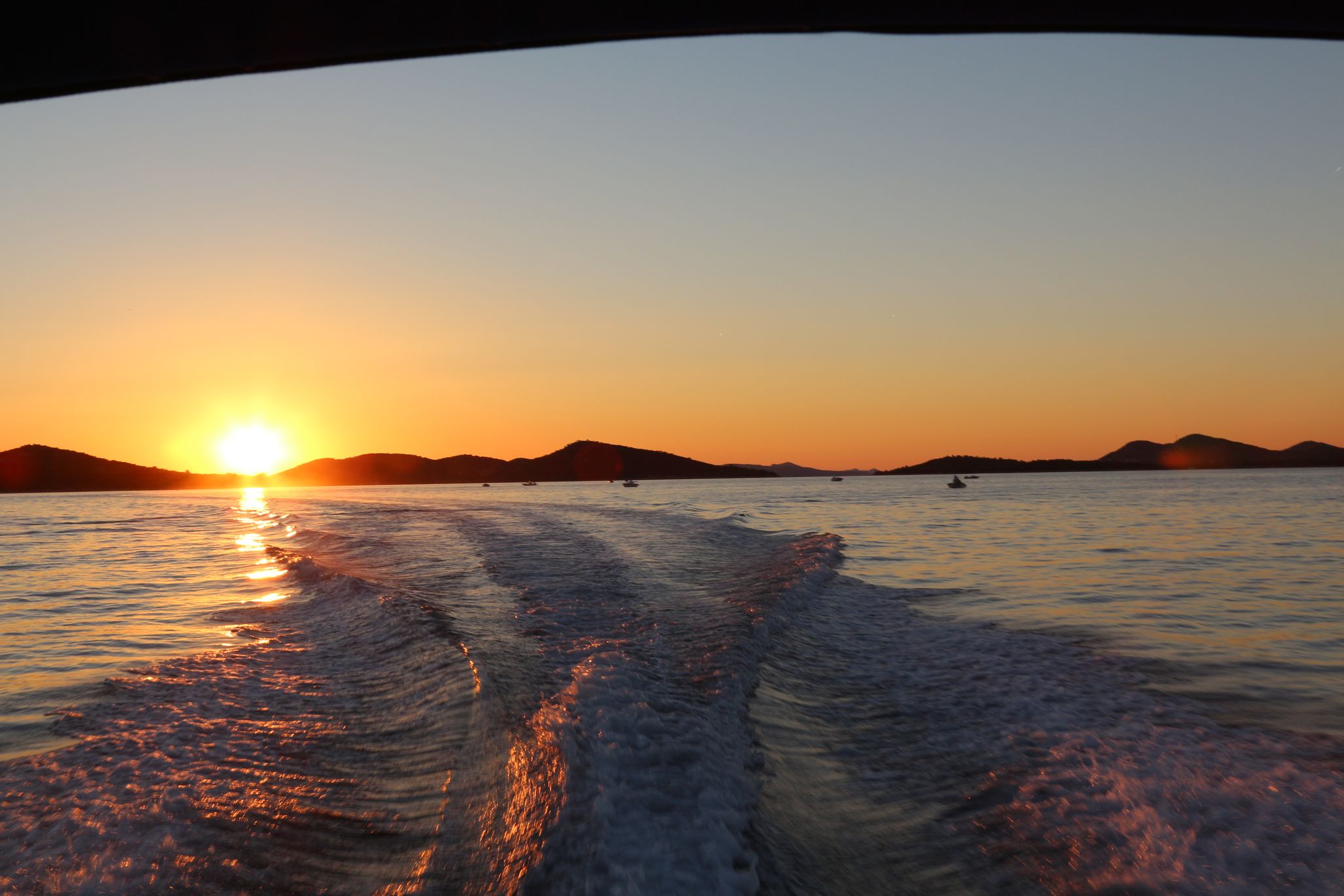 Das vorhandene Bimini mit Camperverdeck wurde sofort gegen ein grösseres ausgetauscht, denn die knappe Beschattung war nichts für Kroatien auch die originale Befestiung vorne nach unten an der Scheibe ist nicht optimal.